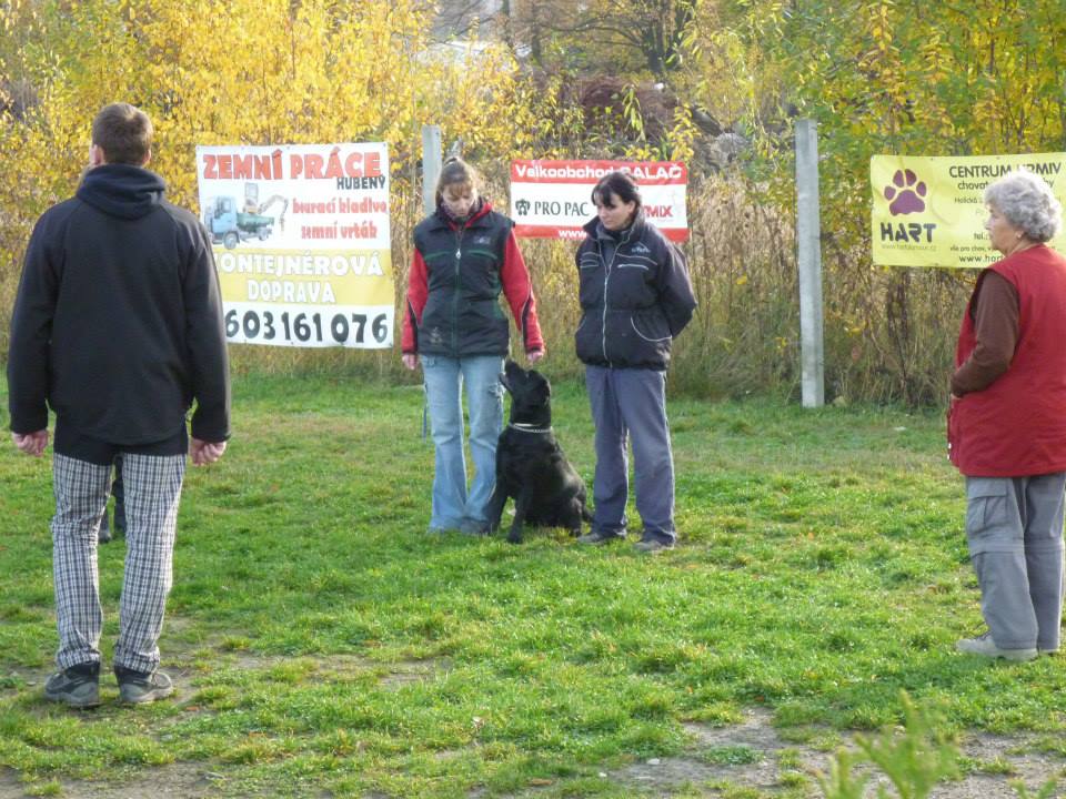 Tofinka byla od začátku zkoušky mírně rozhozená paniččinou nervozitou, což se také odrazilo ve výkonu. Ztratili jsme celkem 13 bodíků. Při přivolání vyběhl za Tofinkou odložený pejsek, ale na přivolání po odchycení pejska majitelem Tofinka krásně přiběhla. Nejvíce jsme se obávali ovladatelnosti ve skupince osob, protože, kdo zná naši Tofču, moc dobře ví, že Tofinka lidi velice zbožňuje a nejradši by všechny umazlila. Ale tady Tofinka velice mile překvapila, ve skupince si osob nevšímala a při zastavení v těsné blízkosti jedné osoby se dívala jen na paničku :-).